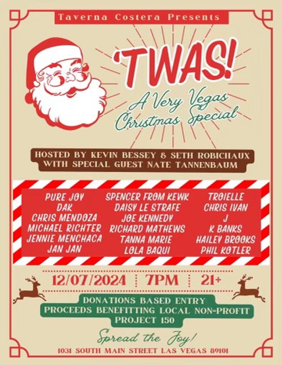 Dec. 7 β¦ The Beverly Theaterβ€ Also: Pursue higher education at Superplastic's Dopeameme Institute, now open at Area 15 β¦ Party like it's 1999 at this screening of Y2K Dec. 5 plus podcast chat β¦ Melt with laughter with "Son of An Ice Cream Man" Martin Amini Dec. 6-7 at Wiseguys Town Square β¦ It's a violent night, holy night at WGW's Deckin' the Halls fundraiser Dec. 7 β¦ Wrestlers tussle for tots at the Slay toy drive Dec. 7 at Container Park β¦ Laughter is the main course at Eat This Comedy Dec. 8 at Ada's Food + Wine.βΌ